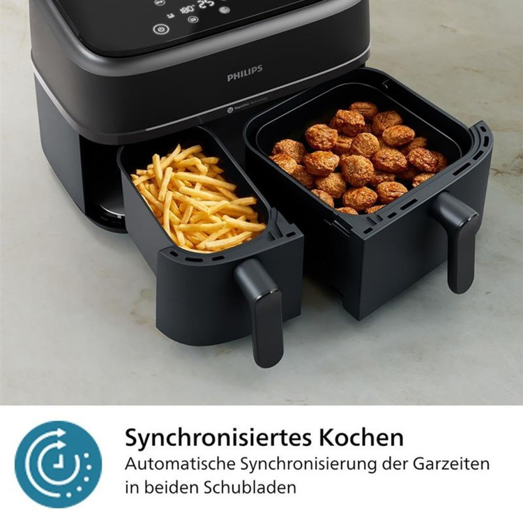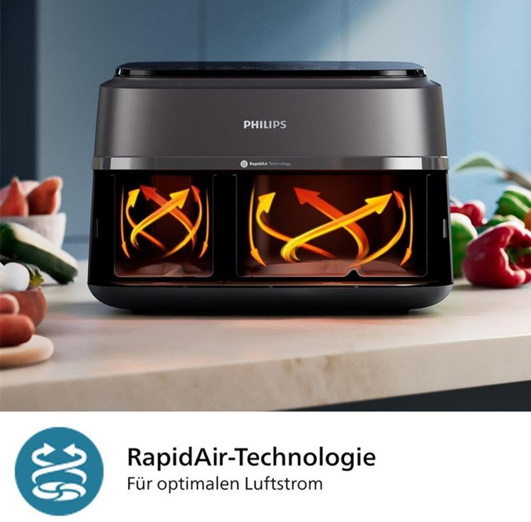 فناوری Airfry به عنوان یک تکنولوژی انقلابی در دستگاههای سرخکن شناخته میشود. در سرخکن دوقلو فیلیپس NA350 نیز این فناوری به کار رفته است تا غذاها با حداقل میزان روغن و با استفاده از جریان هوای داغ پخته شوند. با این روش، غذاها تردی مطلوب و طعم لذیذی دارند، اما بدون چربی اضافی که در روشهای سنتی سرخ کردن مورد نیاز است.
