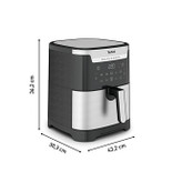 همانطور که گفتیم طراحی مخزن این دستگاه بصورت مستطیل شکل با قابلیت جداشدن کامل صورت گرفته است. وجود دسته فلزی و خاصیت عایق سرد در این بخش، باعث سهولت در انجام کار با دستگاه شده تا به راحتی در گرمترین حالت هواپز، مخزن را با دست بگیرید و بیرون بکشید. علاوه بر این، گنجایش 6.5 لیتری این بخش برای مصرف مستمر یک خانواده 5 نفره بسیار مناسب میباشد.