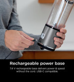 امتیاز بزرگ این شیکر، شارژی بودن آن است که به دلیل استفاده از باتری قابل شارژ به جای برق مستقیم امکان تهیه نوشیدنی ها و اسموتی های متنوع و جذاب در دل طبیعت و هر مکانی که دسترسی به برق ندارید، را فراهم کرده است. باتری دستگاه پس از شارژ کامل توان کافی برای استفاده های متعدد را فراهم می کند.