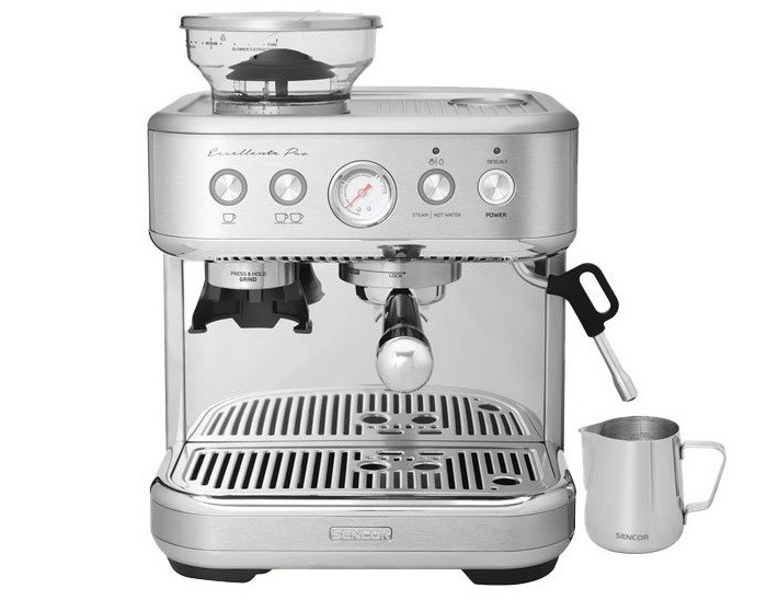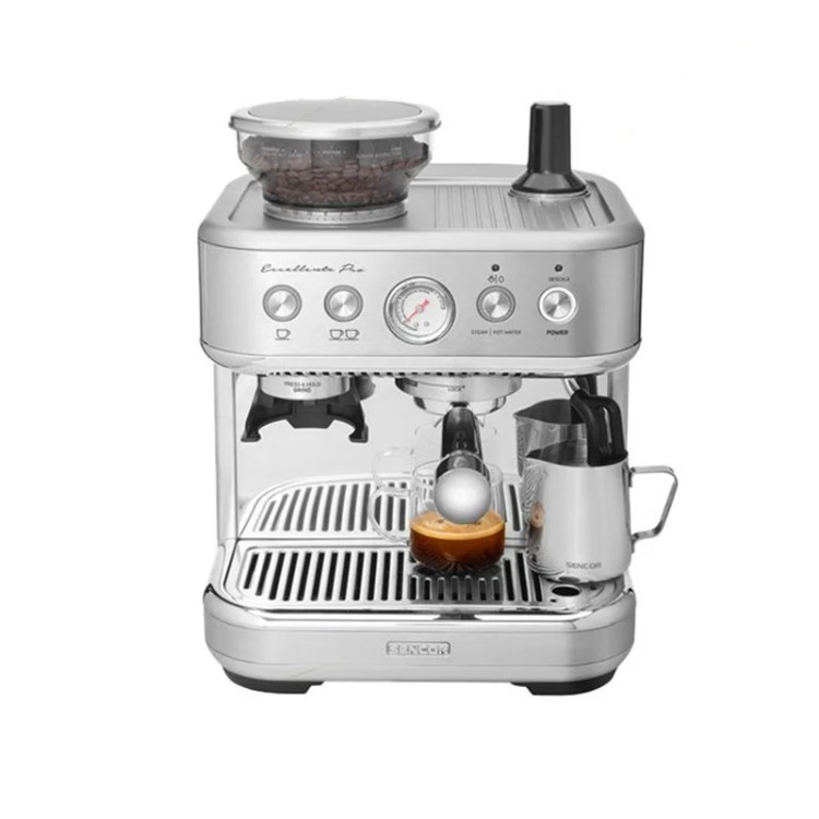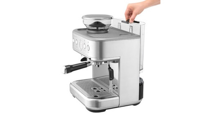 این دستگاه از مخزن مخصوص دانههای قهوه و قهوه آسیابکن نیز برخوردار است تا دیگر نگران آسیاب قهوه در زمان مناسب و از دست رفتن طعم و عطر آن نباشید. مخزن دانه های قهوه در قسمت بالای دستگاه قرار دارد و به اندازه 250 گرم قهوه گنجایش دارد شما میتوانید دانه های قهوه را داخل مخزن بریزید و به هر میزان که نیاز دارید آن را بوسیله آسیاب دستگاه خرد کنید و میزان درشتی و ریز بودن قهوه نیز به دلخواه خود تنظیم کنید