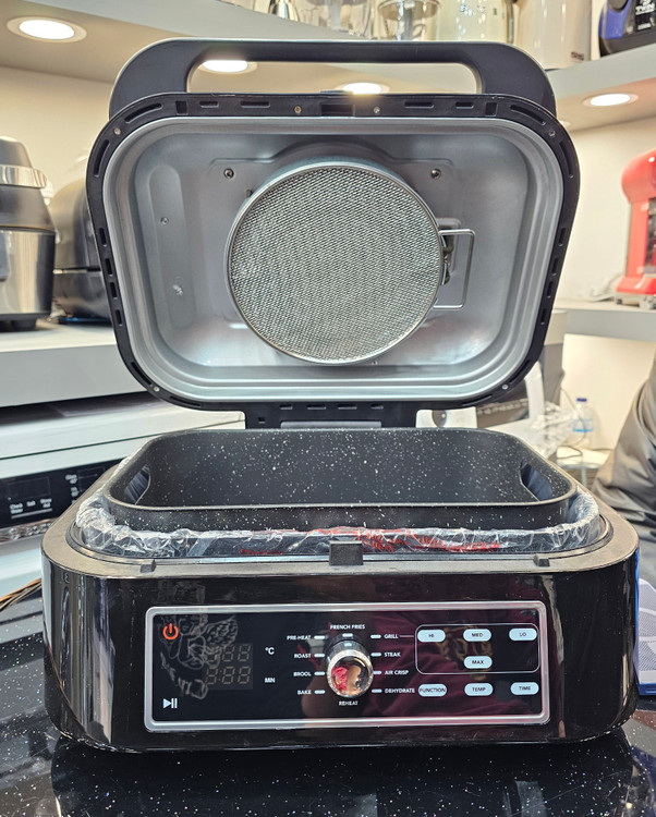 تابه 8.3 ليترى گريل مى تواند تان استيك، هه هات داك، مناسب براى يتزاى 1) ايتجى را در خود جاى دهد