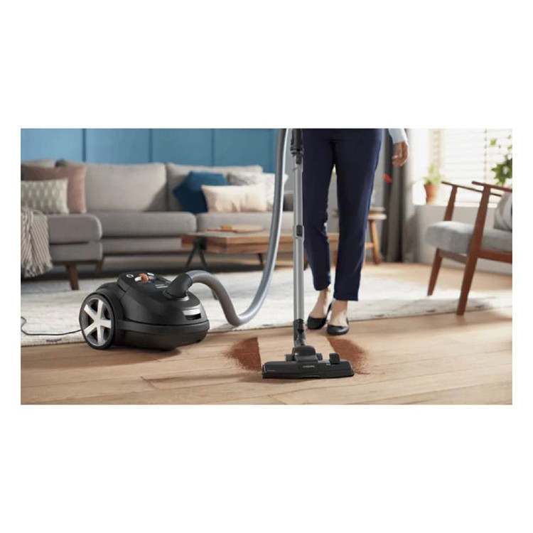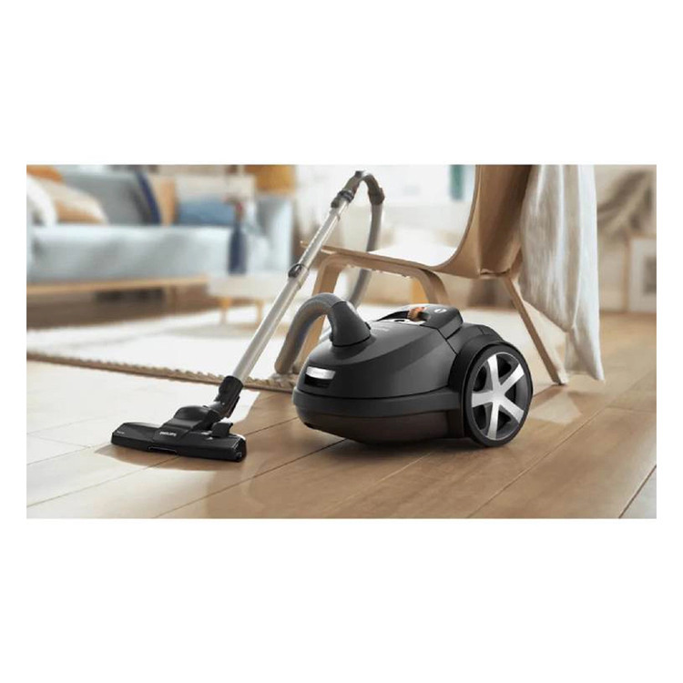 در قسمت انتهایی جاروبرقی فیلیپس XD8022 یک فیلتر HEPA 13 تعبیه شده که به راحتی می تواند 90 درصد هوای خروجی را فیلتر کند و هر گونه ذرات گرد غبار را از بین ببرد. به علاوه کیسه این محصول بسیار بزرگ و جا دار بوده و ظرفیت آن به 4 لیتر می رسد که برای جمع آوری ذرات خشک تا مدت های طولانی به کاربرده می شود. البته لازم به ذکر است که بدانید طول سیم کابل این جاروبرقی بسیار بلند بوده و شعاع عملکرد آن به 11 متر می رسد و شما به راحتی می توانید تمامی نقاط خانه خود را بدون کم ترین جابجایی پریز برق تمیز کنید.