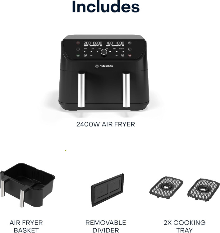 سرخ کن nutricook NC-AFD285 دارای توان 2400 وات است که قدرت بالایی برای پخت و پز فراهم میکند. ظرفیت آن 8.5 لیتر است که به دو محفظه 4.25 لیتری تقسیم شده است. با این ویژگی، شما میتوانید در یک زمان، دو نوع غذا را به طور همزمان تهیه کنید. این قابلیت برای خانوادههای بزرگ یا افرادی که مهمانی برگزار میکنند، بسیار مفید است.