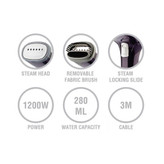 این مدل معرفی شده دارای توان 1200 وات می باشد که در دقیقه 22 گرم بخار را پیوسته خارج می کند، همچنین دارای مخزنی به ظرفیت 280 میلی لیتر می باشد.از دیگر مشخصه های این اتو بخار ایستاده می توان به کابل برق 3 متر ان نیز اشاره کرد که قدرت مانور آن را بیشتر می کند.