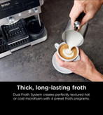 اسپرسو ساز نینجا مدل Ninja Luxe Café Premier دارای آسیاب داخلی و یکپارچه است و شما میتوانید از دانههای قهوه عربیکا و روستا برای درست کردن قهوه استفاده کنید. به دلیل آسیاب کردن دانهها به صورت مستقیم حس طراوت و تازگی نوشیدنی بیشتر شده و لذت نوشیدن آن برای شما دوچندان میشود.