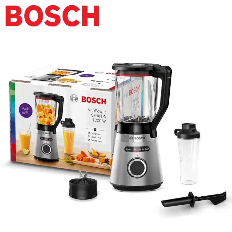 مخلوط کن بوش مدل BOSCH MMB6384M با توان مصرفی 1200 وات و چرخش موتور 30000 دور در دقیقه از سری VitaPower این برند محبوب است.